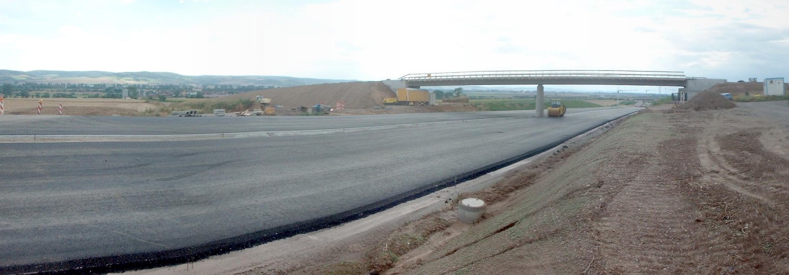 Diese Wirtschaftsweg-Brücke ist fast fertiggestellt, die Anschußdämme wurden geschüttet und die Tragschicht ges Oberbaues teilweise hergestellt.